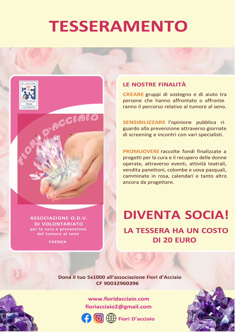 Se non puoi presentarti puoi inviarci una mail a fioridacciaio2@gmail.com . Riceverai le istruzioni per il pagamento e, una volta eseguito, ti spediremo la tessera comodamente a casa tua via posta