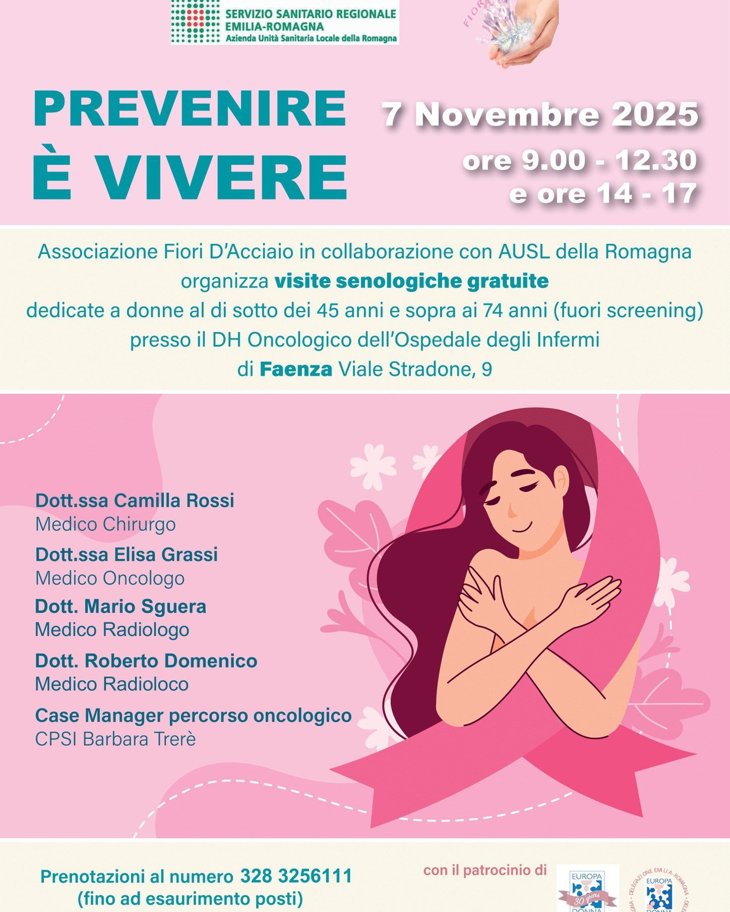 L’ Associazione Fiori D’Acciaio ODV organizza una serata con medici specialisti della multidisciplinare senologica dell’Ospedale di Faenza, Lugo, Ravenna per la prevenzione e cura del tumore al se…