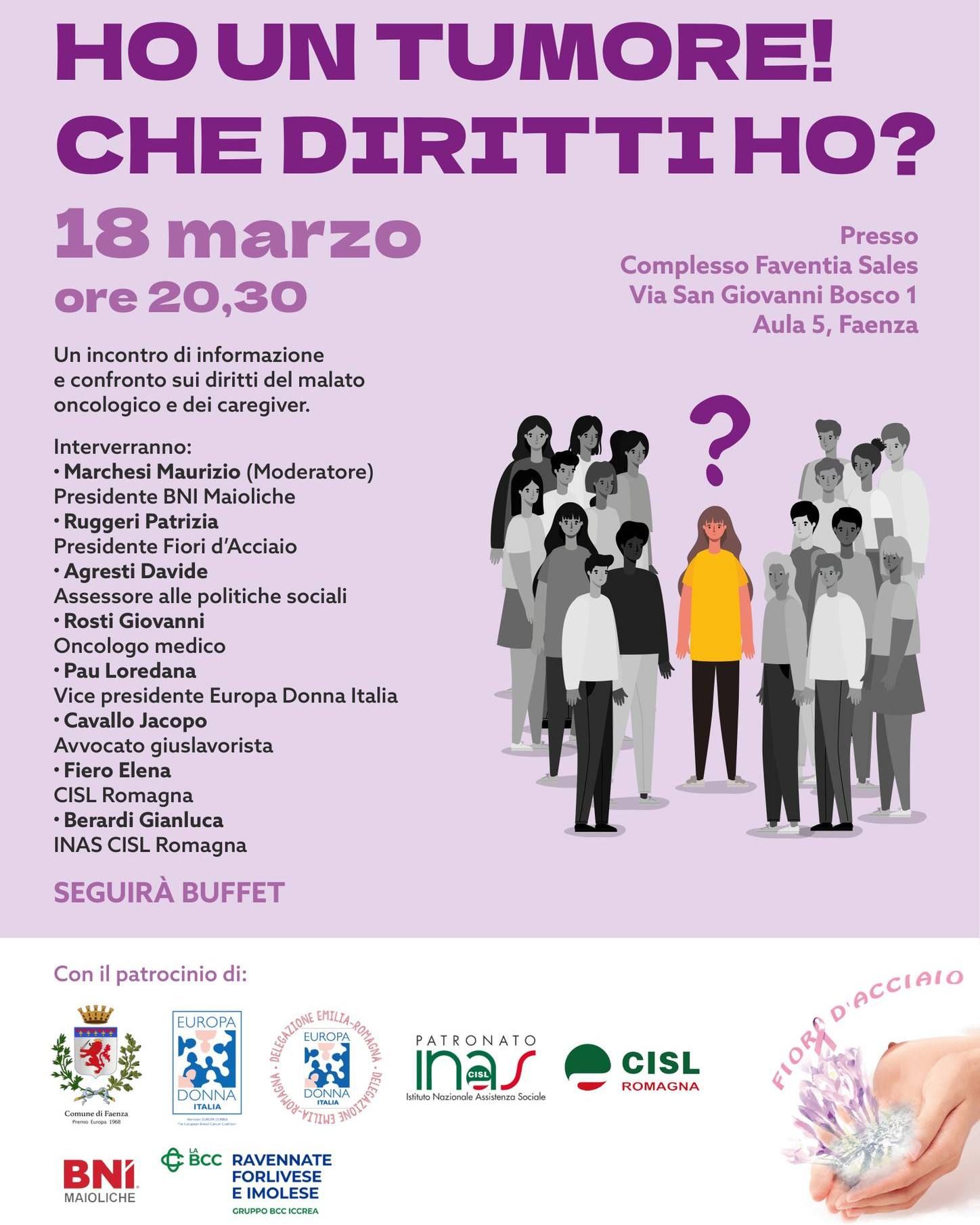 Quando arriva una diagnosi di tumore, le domande sono tante. Le paure anche. E spesso ci si sente soli. Per questo il 18 marzo, alle 20:30, al Complesso Faventia Sales di Faenza, nasce un incontro…