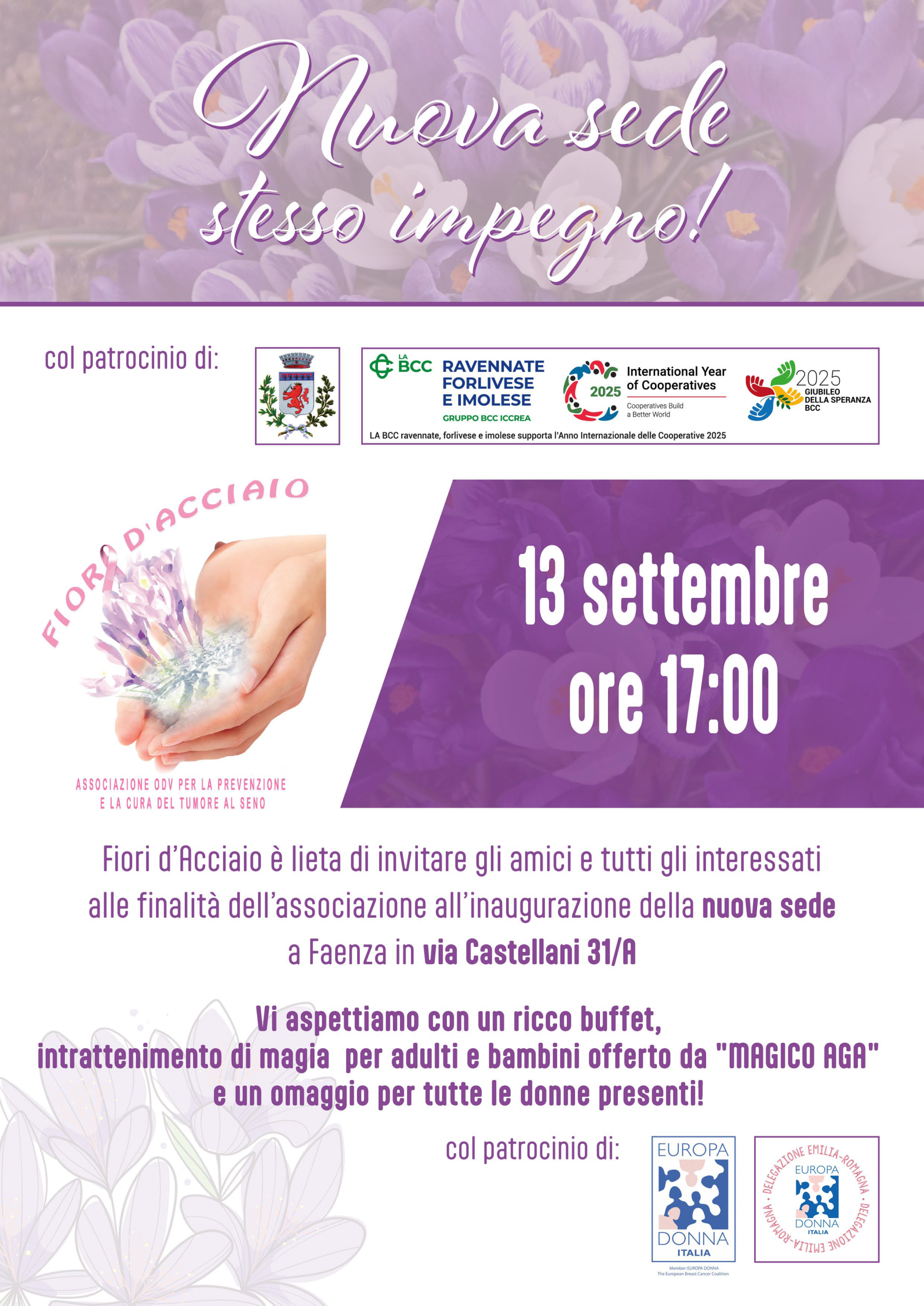 Il 13 settembre alle 17:00 Fiori d’Acciaio apre le porte della sua nuova sede in via Castellani 31/A!